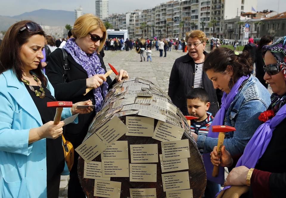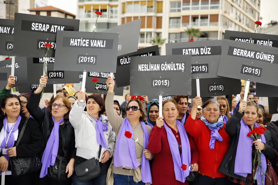 Son bir yılda cinayete kurban giden 315 kadın Konak Belediyesi’nce Gündoğdu Meydanı’nda düzenlenen 8 Mart Dünya Kadınlar Günü etkinliğinde anıldı. İzmirli kadınlar öldürülen kız kardeşlerinin yasını denize attıkları karanfillerle dile getirdi.