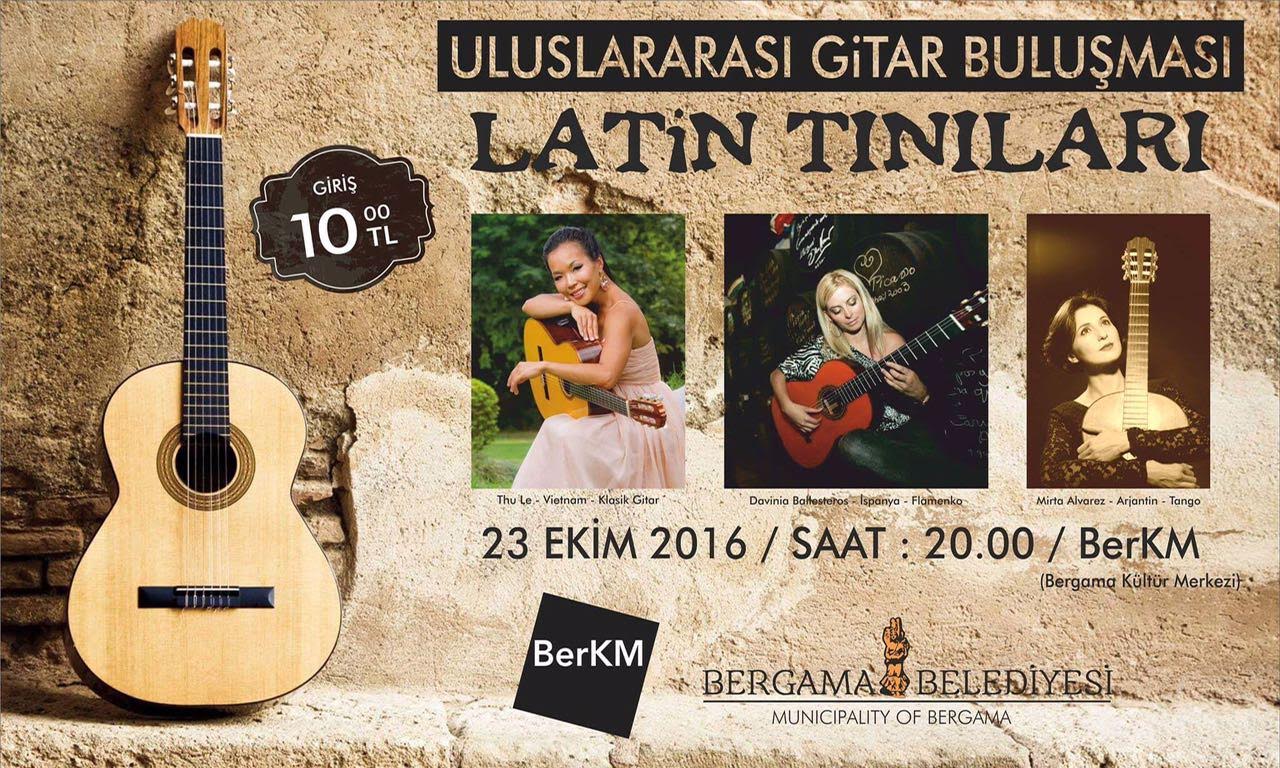 Vietnamlı dünyaca ünlü gitarist Thu Le (Klasik), İspanyol gitarist Davinia Ballesteros (Flamenko), Arjantinli gitarist Mirta Alvarez (Tango) BerKM'de sanatseverlerle bir araya gelecek. 23 Ekim Pazar Günü saat 20.00'de başlayacak konserin biletleri 10 TL'den satılacak.Kaynak: BerKM Dünyaca Ünlü Gitaristleri Ağırlayacak