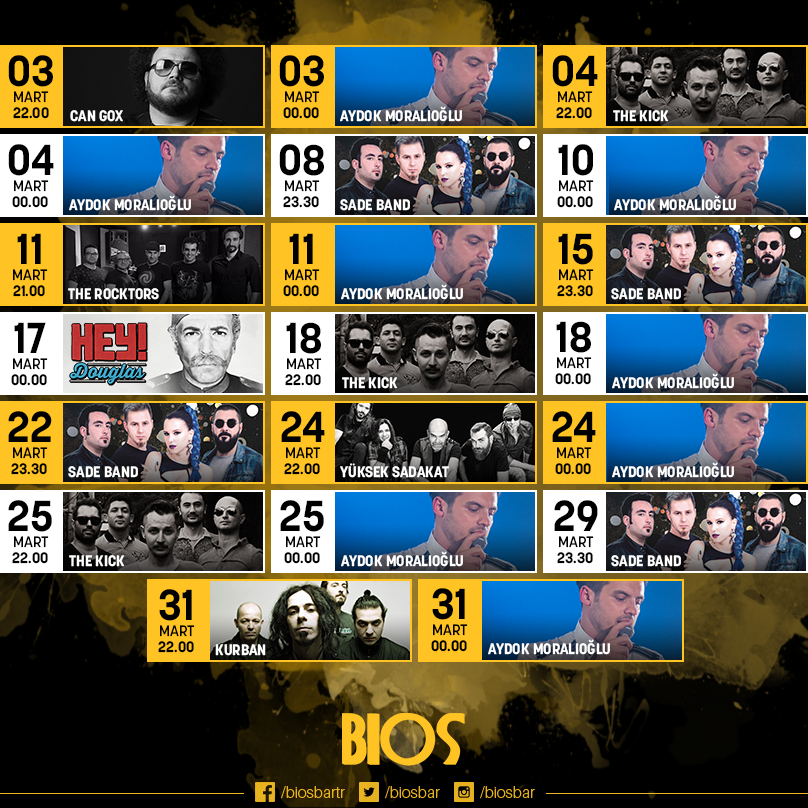 Bios Bar Alsancak Mart 2017 Konser Programı