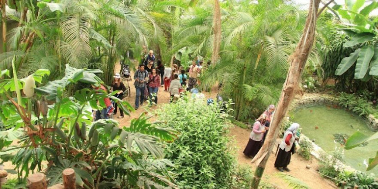Özel olarak iklimlendirilen merkez, dört mevsim boyunca yağmur ormanlarında rastlanabilecek yüksek nem oranı ve 26 derece sıcaklıkta tutuluyor.