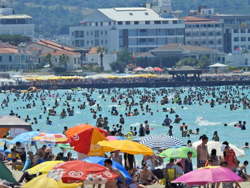 Seçimler ve sınavlar nedeniyle bu yıl tatile gecikmeli çıkan tatilciler, büyükşehirlerin bunaltıcı, stresli yaşamından ayrıca yaz sıcağından kurtulmak için sahil kentlerine giderken, tatilcilerin en çok tercih ettiği turizm beldelerinin başında Çeşme geldi. Klima etkisi yaratan esintisiyle ünlü Çeşme, deniz sporu yapmak isteyenler için de tercih edilen bir kent olarak öne çıktı. Sörf ve kitesurf yapmak isteyenler için ideal rüzgara ve su derinliğine sahip koylar, bu yıl da doldu. İnce kumu ve mavinin her tonunu taşıyan plajlar da serinlemek isteyenlerin akınına uğradı. Üç tarafı denizle çevrili ilçenin Alaçatı Çark Plajı, Delikli Koy, Çatalazmak, Altınkum, Pırlanta, Çiftlik, Tekke, Kocakarı, Boyalık ve dünyaca ünlü Ilıca plajınde 'iğne atsan yere değmez' dedirten görüntüler ortaya çıktı. Bazı tatilciler, günübirlik gezi tekneleriyle Eşek Adası, Makri Ada, Mercan Adası gibi adaların berrak ve serin koylarında yüzmenin tadını çıkardı. Çeşme'nin marka değeri en yüksek mahallesi Alaçatı ise bu yıl da tatilcilerin en gözde yeri olma özelliğini korumaya devam etti.