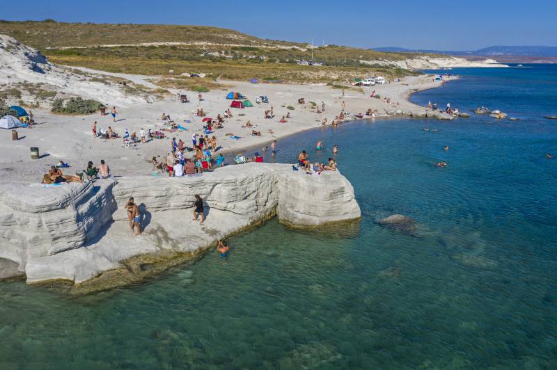 Yaz sezonunda yoğun nüfusuyla gündeme gelen Alaçatı'da denize girmek için sakinliği arayanların tercihleri arasında yer alan koy, turkuaz rengi denizi ve dalgaların aşındırdığı kireç kayalıklarıyla görsel şölen sunuyor.