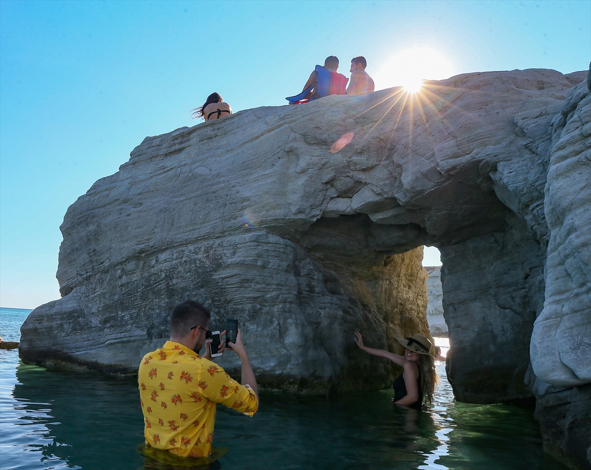 Sıcak havadan bunalanlar denizde serinlerken, bazıları ise sadece delikli kayada fotoğraf çektirmek için koya geliyor. Özellikle haftasonları delikli kaya önünde fotoğraf sırası oluyor. Bazı gelin damat adayları da dış çekimlerini burada yaptırıyor.