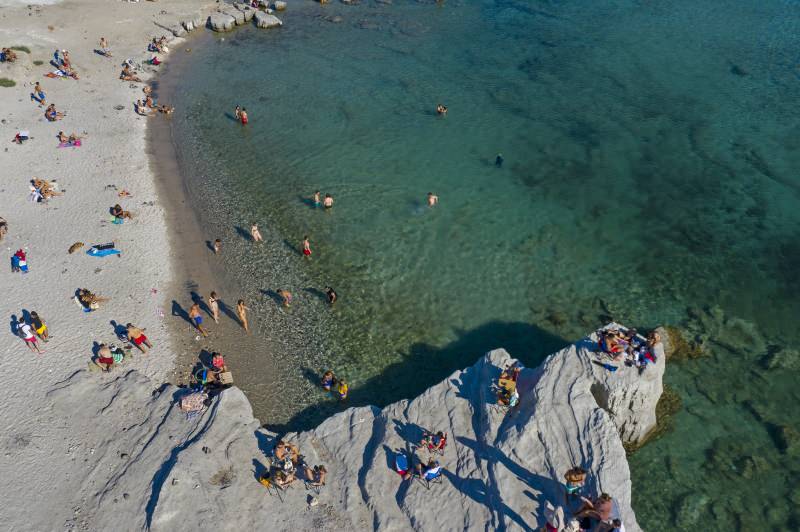 İsmini içinde bulunan delikli kayadan alan koyda, kimileri güneşten korunmak için çadır kuruyor kimileri ise dalgaların aşındırdığı kayalıkların gölgesinde serinliyor.