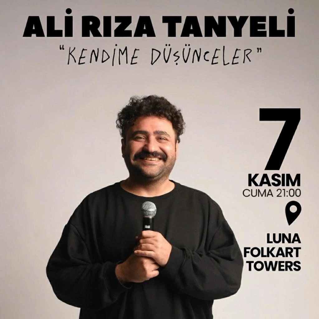 Ali Rıza Tanyeli Kendime Düşünceler Stand Up 07 Kasım 2025, Cuma, 21:00 Luna Folkart Towers M.Ö. 180’de Marcus Aurelius derlediği düşünceleri 2024’te yakın çevresinden duyan Ali Rıza öğütlerle, ağıtlarla bezediği
