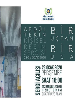 Abdül Tekin'in ‘Bir Uçtan Bir Uca’ adlı kişisel resim sergisini 23 – 31 Ocak tarihleri arası Gaziemir Belediyesi Hizmet Binası'nda ziyaret edebilirsiniz..