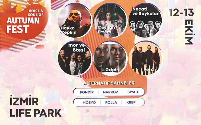12-13 Ekim 2019 tarihlerinde Autumn Fest ile sonbaharın sesini ve ruhunu hissetmek üzere İzmir'in en güzel festival mekanlarından olan Life Park Buca'da buluşuyoruz.