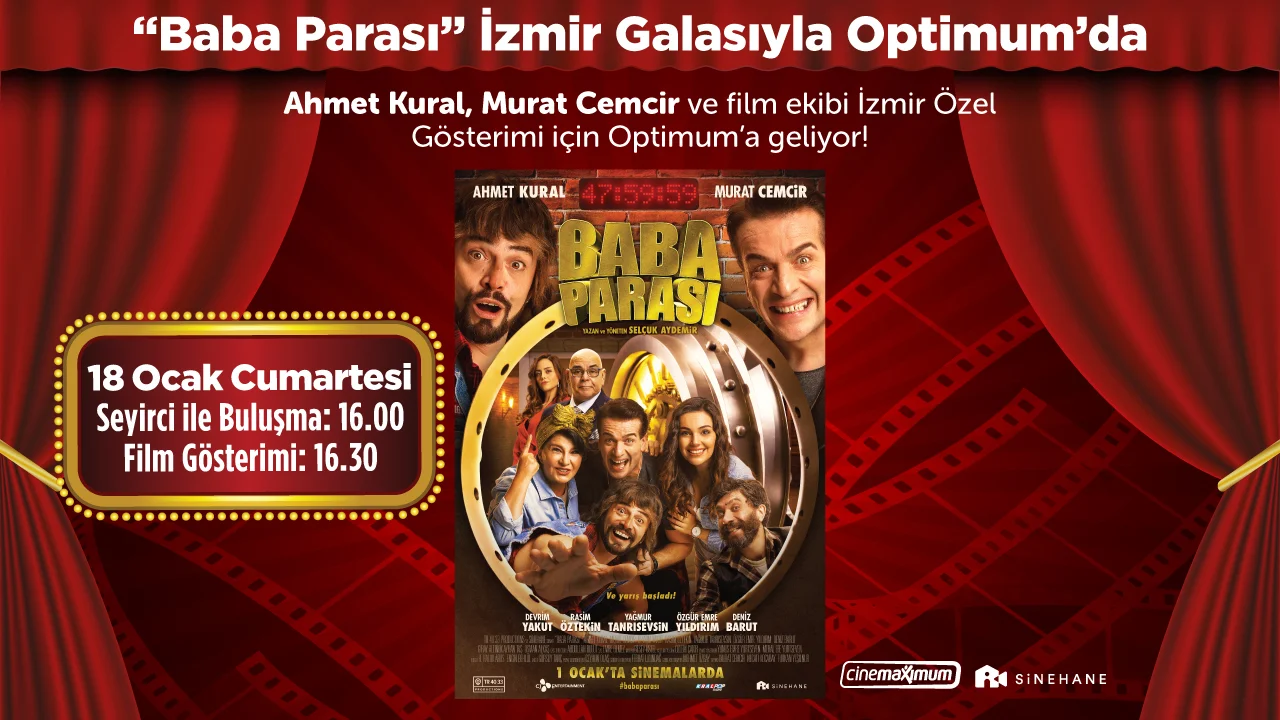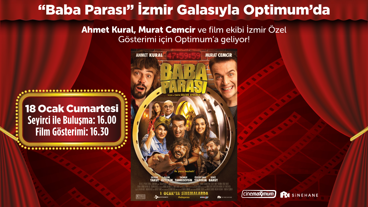 Tarih: 18 Ocak 2020Saat: 16.00 – 16.30Yer: Optimum AVMAhmet Kural, Murat Cemcir ve Film Ekibi İzmir Özel Gösterimi İçin Optimum'a Geliyor!Seyirciyle Buluşma: 16.00Film Gösterimi: 16.30