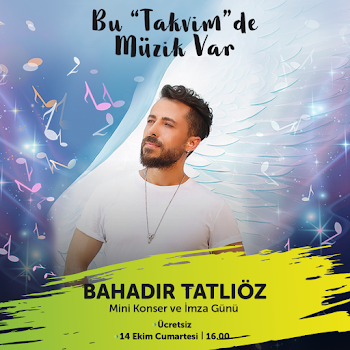 Bu 'Takvim'de Müzik Var!Sevilen şarkısı 'Takvim' ile Bahadır Tatlıöz, 14 Ekim Cumartesi saat 16.00'da, ücretsiz mini konser ve imza günü için İzmir Optimum'da sizlerle olacak! Kaçırmayın…