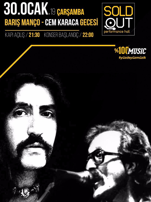Anadolu rock müziğinin efsane isimleri Barış Manço ve Cem Karaca için düzenlenen gece SoldOut Performans Hall'da sizlerle buluşuyor.