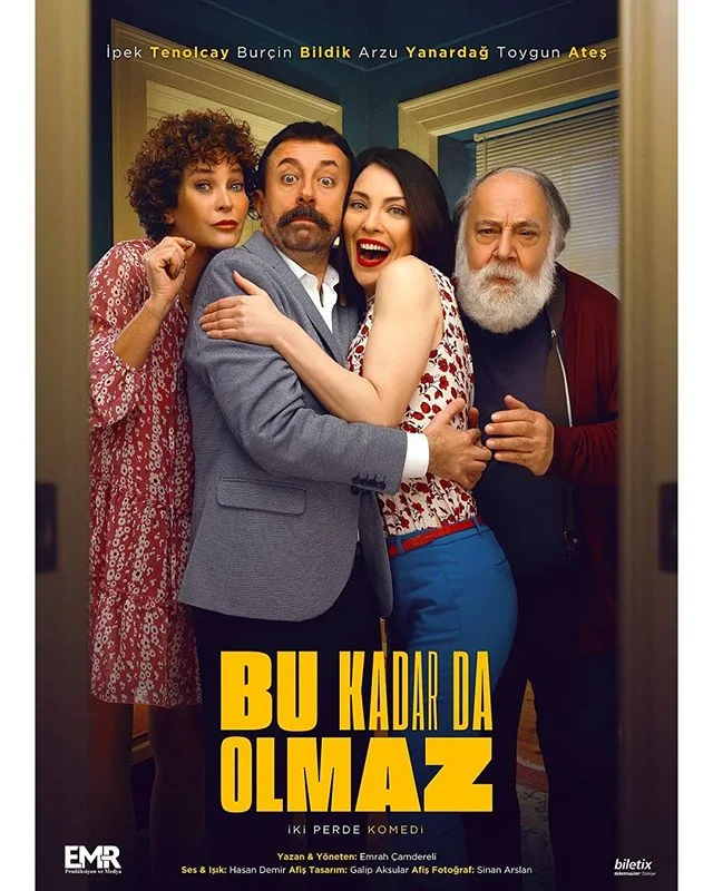 ‘Burçin Bildik, Arzu Yanardağ, İpek Tenolcay ve Toygun Ateş’in rol aldığı “Bu Kadar da Olmaz” adlı oyun tiyatro severlerle buluşuyor. Bir aile komedisi olan “Bu kadar da olmaz” oyununu yazan ve yöneten Emrah Çamdereli mizah konusunda ki farkını bu muhteşem kadroyla ortaya koyuyor.