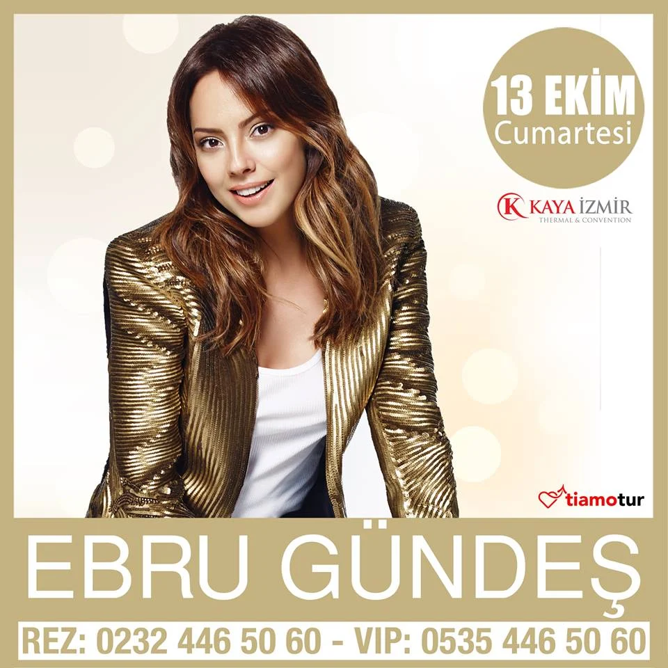 Sezona Muhteşem Başlangıç!Ebru Gündeş 13 Ekim Cumartesi günü İzmir Kaya Thermal Otelde! Gala Yemekli Eğlence 149TLREZ: 0232 4465060 VIP: 0535 4465060