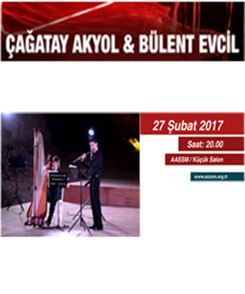 Bülent Evcil ile çocukluk arkadaşı ve yıllarca birlikte çalıştığı Türkiye'nin en başarılı arp sanatçılarından olan Çağatay Akyol aynı sahnede çok zengin bir repertuarla bir araya geliyorlar. Müziğin her yelpazesinden bezenmiş bir repertuarla sahne alan başarılı ikili, yurtiçi ve yurtdışı konserlerle adlarından çokça söz ettiriyorlar. Mitolojik iki enstrümanın; çalgılarında usta olan kişilerle AASSM’de buluşmasını kaçırmayın. Konserde Bach'tan Ravel'e, İrlanda havalarından tangoya ve Japon ezgilerine uzanan bir müzik şöleni sizleri bekliyor.