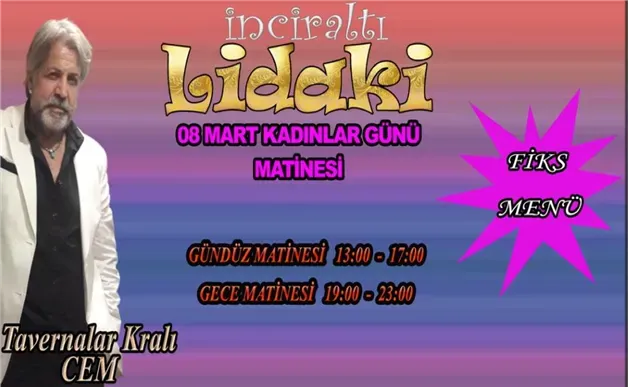 İçeceğini Al gel menüsü ile kadınlar gününde içeceklerinizi kendiniz getirebilir, enfes lezzetler ve Tavernalar kralı Cem ile canlı müzik eşliğinde keyfinize keyif katabilirsiniz.