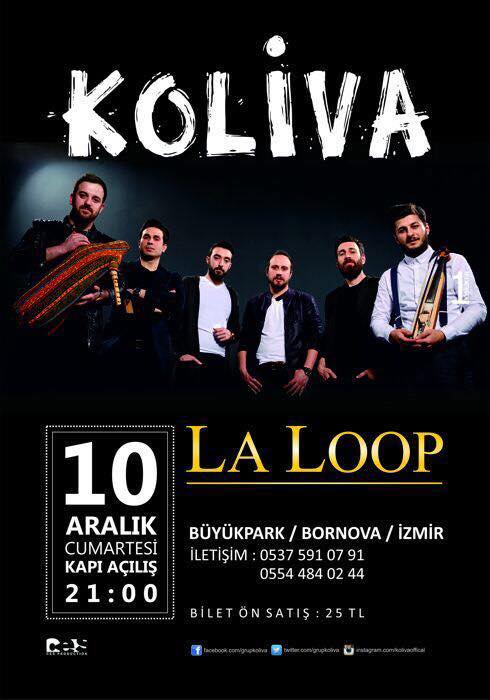 Koliva, çok kültürlü Karadeniz şarkıları albümü Yüksek Dağlara Doğru'dan şarkıları seslendireceği konseriyle, 10 Aralık'ta La Loop İzmir Sahnesinde…La Loop İzmir İzmir / BornovaFevzi Çakmak Cad. no: 25/G Bornova Büyük Park Karşısı