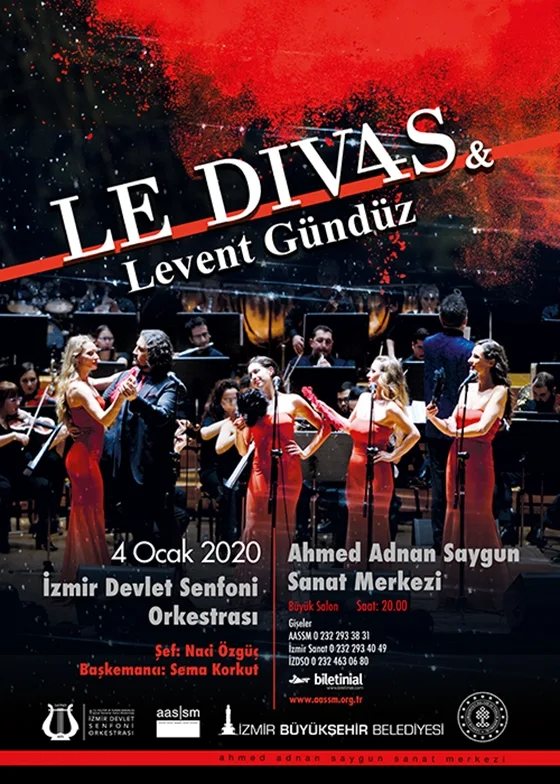 Türkiye'de sadece ülkemizin en güçlü seslerinden tenor Levent Gündüz ile sahne alan ve dört İtalyan sopranodan oluşan “LE DIV4S”, başarılı orkestra şefi Naci Özgüç tarafından yönetilecek İzmir Devlet Senfoni Orkestrası eşliğinde sahne alacak.