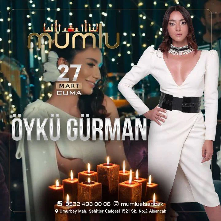 İzmir'in gözde mekanı Mumlu birbirinden özel isimleri sizlerle buluşturmaya devam ediyor! 27 Mart Cuma günü Öykü Gürman ile kulaklarınızın pasının silineceği eğlenceye doyacağınız bir akşam sizi bekliyor…Mumlu Meyhaneİletişim: 0 (532) 493 00 06