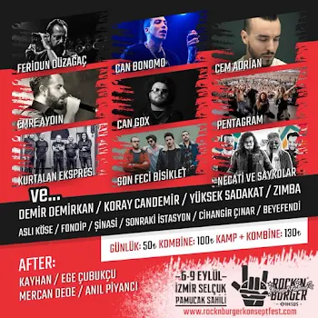 Rock'N Burger Konsept Festivali, İzmir Selçuk beldesinin Pamucak sahilinde 6-7-8-9 Eylül 2018'de gerçekleşecektir.