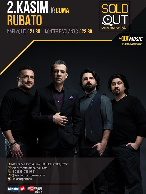 ‘Rubato’ Konseri2 Kasım Cuma – 21:00 SoldOut Performance Hall Biletler65,00 TL 49,00 TLRubato, Soldout Performance Hall'de.