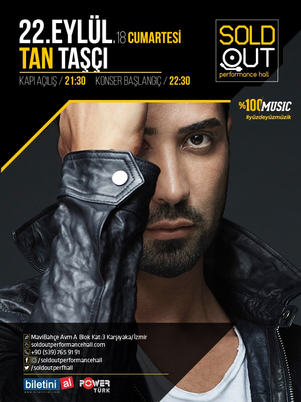 ‘Tan Taşçı’ Konseri22 Eylül Cumartesi – 22:00 SoldOut Performance Hall Biletler65,00 TL 49,00 TLTürk pop müziğinin sevilen seslerinden Tan Taşçı, büyük ilgi gören albümünden şarkılarla SoldOut Performance Hall sahnesinde..