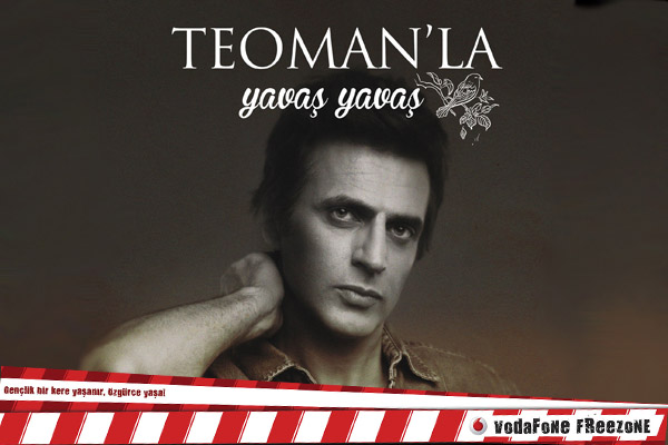 Vodafone FreeZone sponsorluğunda gerçekleşen ‘Yavaş Yavaş’ turnesi kapsamında Teoman sizlerle buluşmaya devam ediyor. Teoman; konserinde ‘Paramparça’, ‘İstanbul'da Sonbahar’ gibi geniş kitlelerin bildiği parçaların yanı sıra ‘Bugün’, ‘En Güzel Hikayem’, ‘Bana Öyle Bakma’ gibi şarkılarının akustik hallerini hayranlarının beğenisine sunacak. ‘Yavaş yavaş’ konserinde Teoman'a; piyanoda Ece Dağıstan, kemanda Mahur Tukan, gitarda Tolga Akyıldız eşlik edecek.