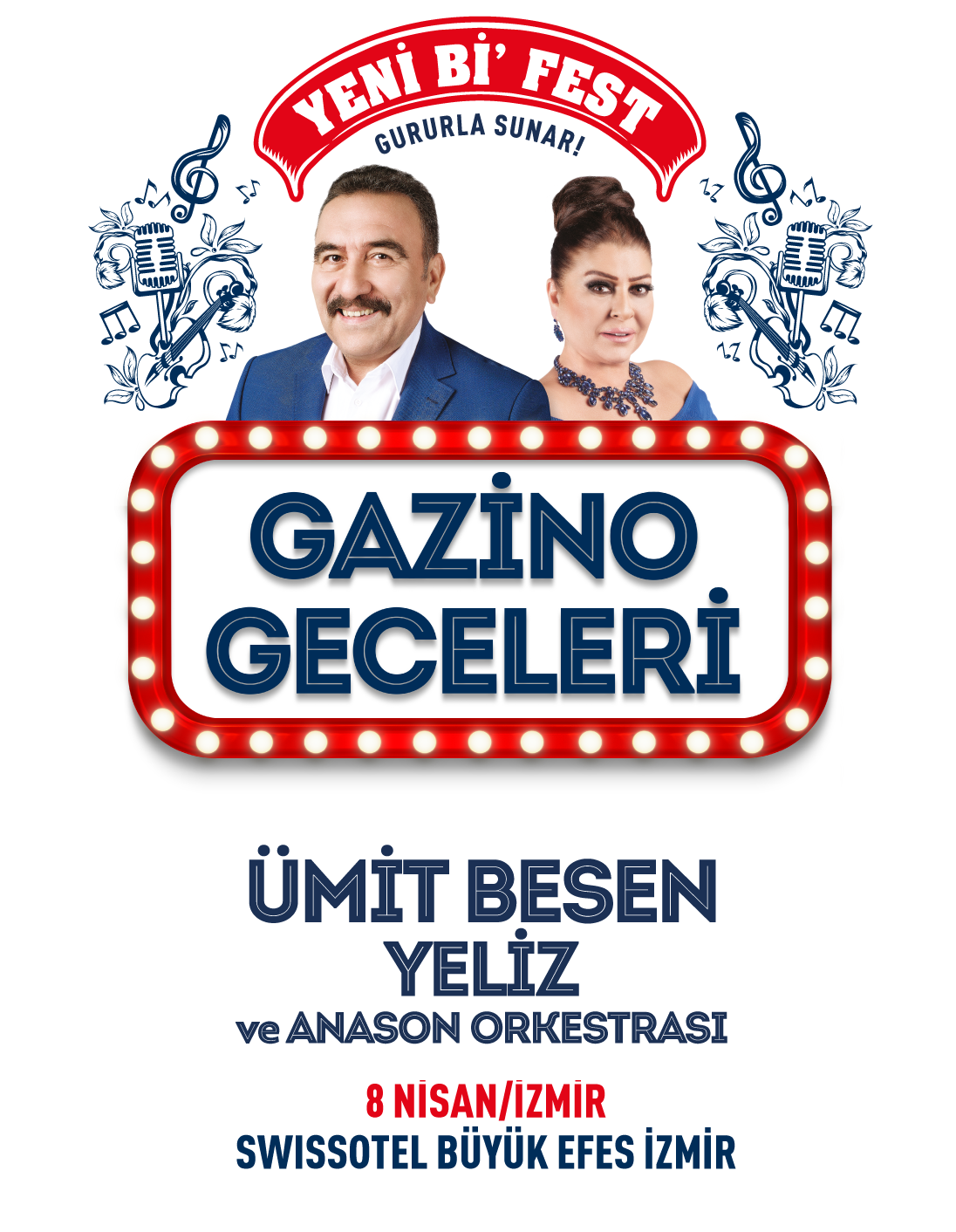 Türkiye’nin bir dönemine damgasını vurmuş, mezenin, muhabbetin ve müziğin en keyifli halinin yaşatıldığı, hatıralarımızdan silinmeyen gazino eğlenceleri, çok özel bir kadroyla bir kez daha canlanıyor. Yaklaşık 40 yıldır fantezi müzik alanında kendine özgü tarzıyla Türk müziğine damga vuran Ümit Besen, 7’den 70’e herkesin ezberlediği şarkıları ile Yeni Bi’ Fest Gazino Geceleri’nde sizlere gazino keyfini doyasıya yaşatacak.