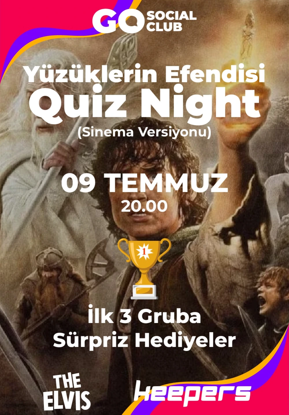 GO Social Club ile The Elvis Pub’da unutulmaz bir deneyim yaşamak için Yüzüklerin Efendisi fanı arkadaşlarınla bir takım ol ve ödüller için yarış. (Sinemada yayınlanan versiyonları kapsamaktadır)