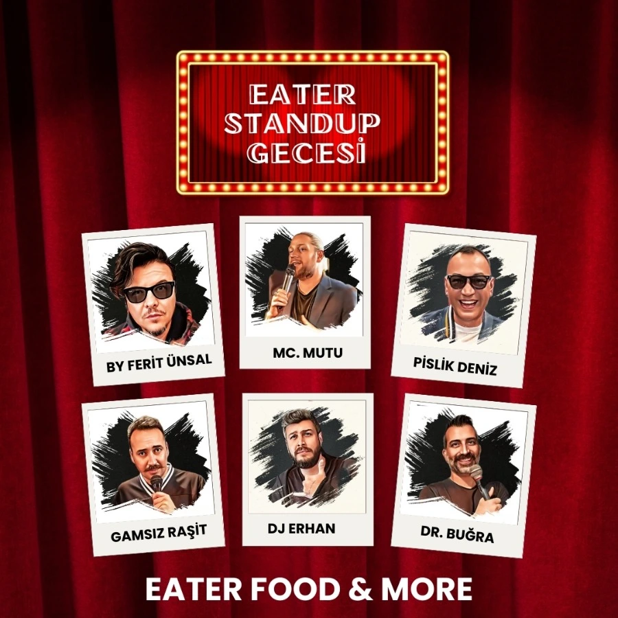 Eater Stand-Up Gecesi 15 Mayıs 2024, Çarşamba, 20:30 Eater Food & More ‘Stand Up Gecesi’ Eater Food & More’da sizleri bekliyor! E-biletiniz tarafınıza mail ve sms olarak iletilecektir. Çıktı almanıza gerek