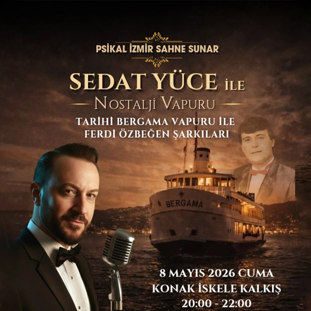 SEDAT YÜCE İLE NOSTALJİ VAPURU – Ferdi Özbeğen Şarkıları 18 Nisan 2026, Cumartesi, 20:00 Konak Vapur İskelesi İzmir Körfezi bu kez hatıralarla yol alıyor… Ve PSİKAL İZMIR SAHNE IFTARLA SUNAR…Tarihi Bergama