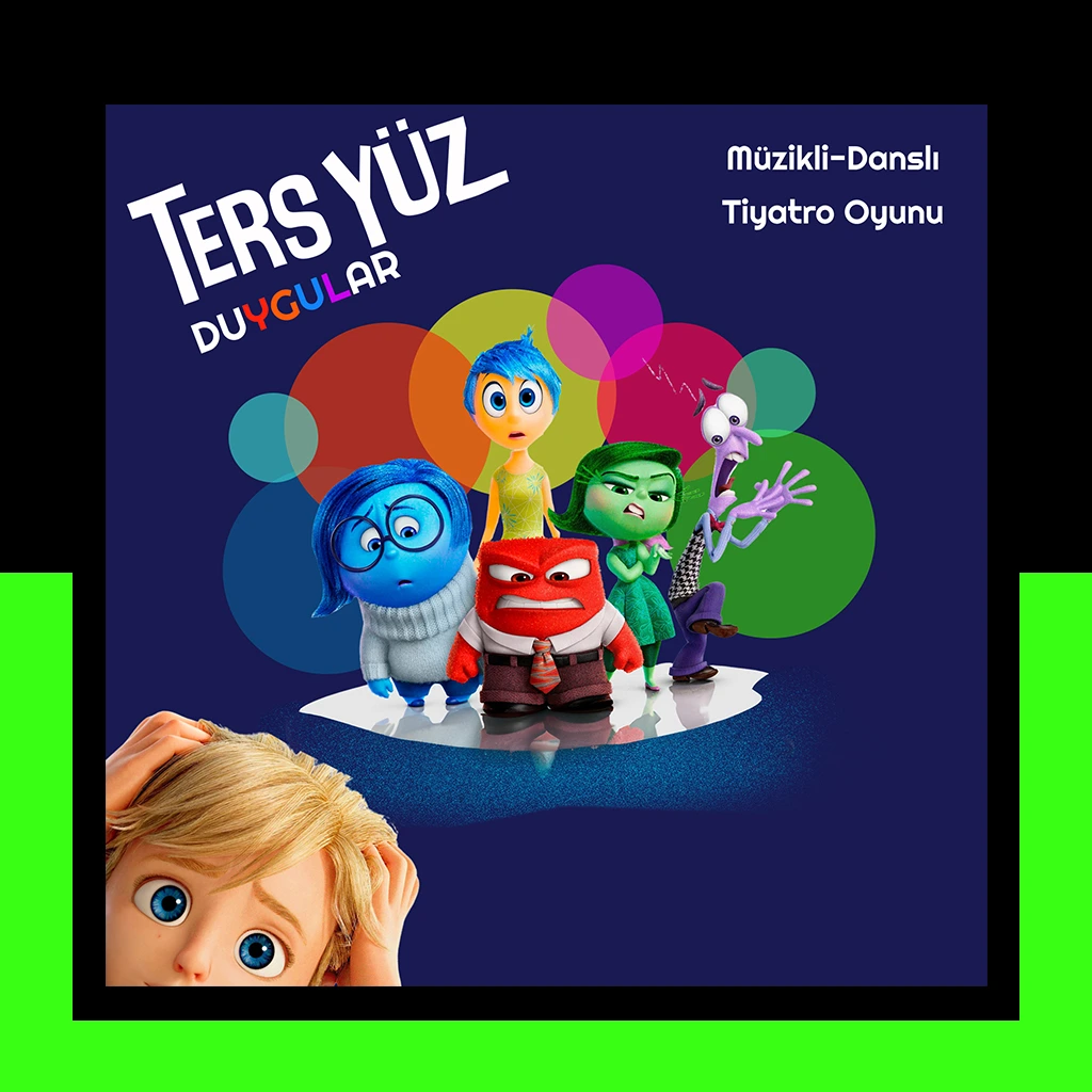 Ters Yüz Kayıp Duygular 06 Aralık 2025, Cumartesi, 13:50 Boyoz Akademi Sanat Merkezi Riley’in ilk okul gününde zihninde yaşayan duyguları Neşe, Üzgün, Korku ve Öfke çok heyecanlıdır. Her şey Neşe’nin