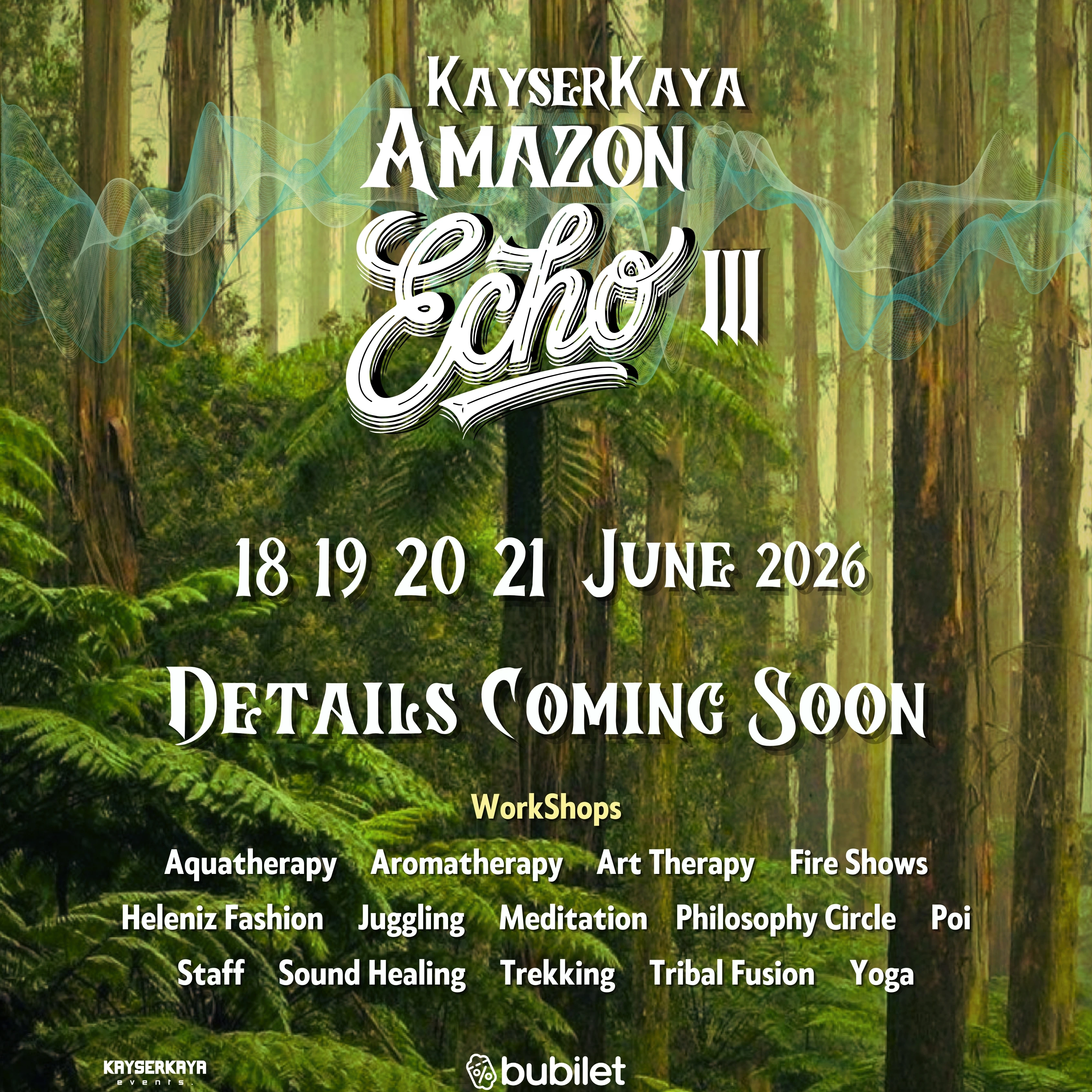 Kayserkaya Amazon Echo III 18 Haziran 2026, Perşembe, 12:00 İzmir Şirince Kayserkaya Dağ Evleri AMAZON ECHO 3 FESTİVALİ 18–21 Haziran | Kayserkaya Dağ Evleri – Şirince Bu topraklar bir sahne değil, bir hafıza. Artemis’in