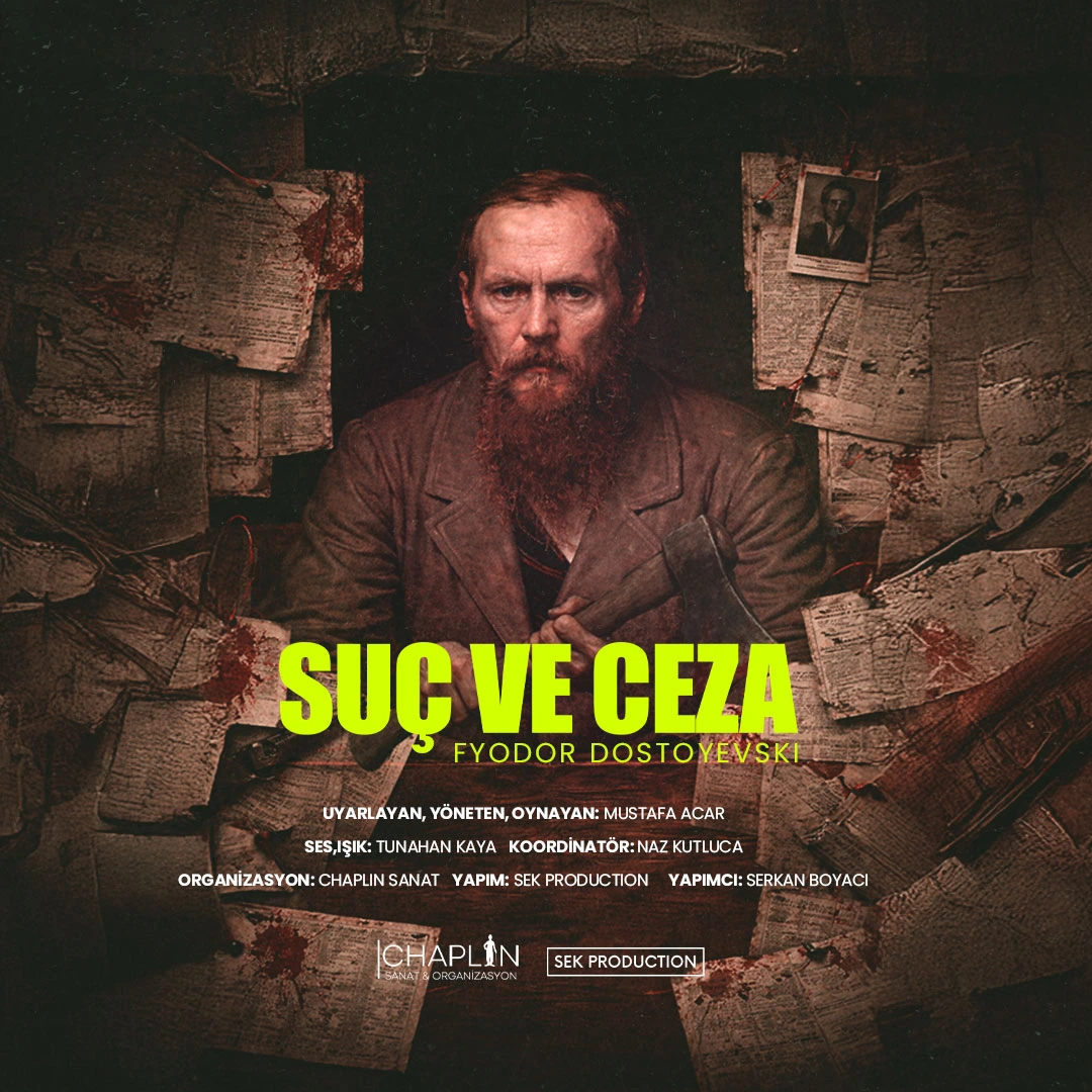 Suç ve Ceza 30 Mayıs 2026, Cumartesi, 17:00 İzmir Nazım Hikmet Kültür Merkezi Edebiyatın başyapıtlarından olan Dostoyevski’nin yazdığı Dünya genelinde en çok okunan ve satılan eseri olarak bilinen Suç ve Ceza da insanı
