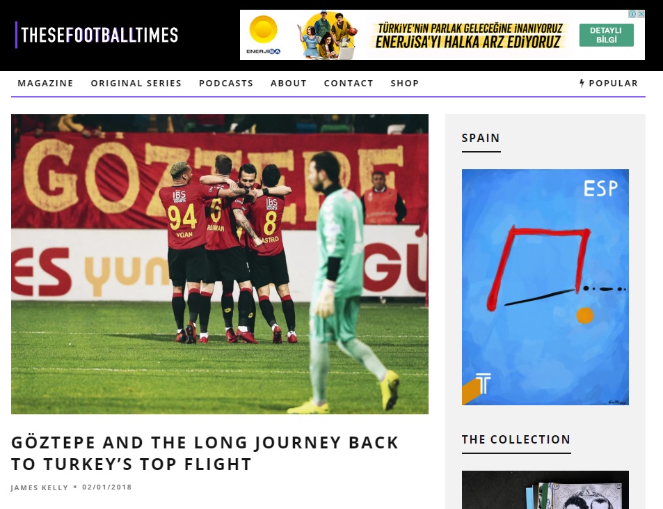 İngiltere'nin köklü gazetelerinden The Guardian'ın bir parçası olan ve gazete için futbol makaleleri üreten site, Göztepe'nin geri dönüş hikayesi ve başarısından övgüyle bahsetti. ‘Göztepe ve Türkiye'nin en yüksek noktasına dönmesinin uzun yolculuğu’ başlıklı makalede kulübün tarihi, özellikle teknik direktör Adnan Süvari yönetimindeki efsane takımın Türkiye ve Avrupa'daki başarıları anlatıldı. Göztepe'nin efsane futbolcuları ve tarihi maçlarını anlatan yazıda 1980-81 sezonunda İzmir'de oynanan 80 bin kişilik Karşıyaka derbisi de unutulmadı.