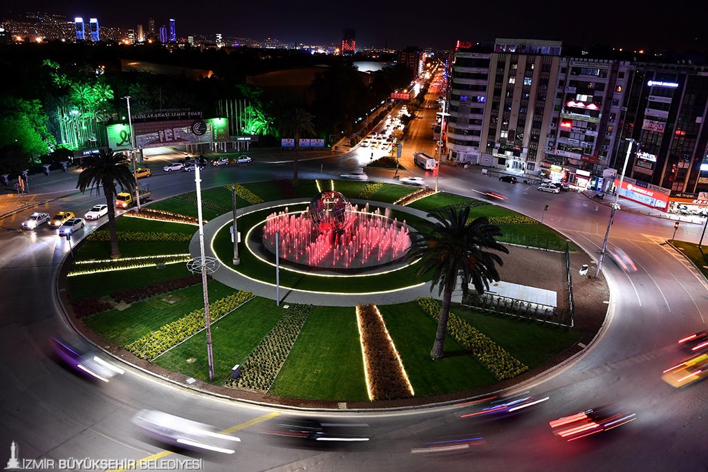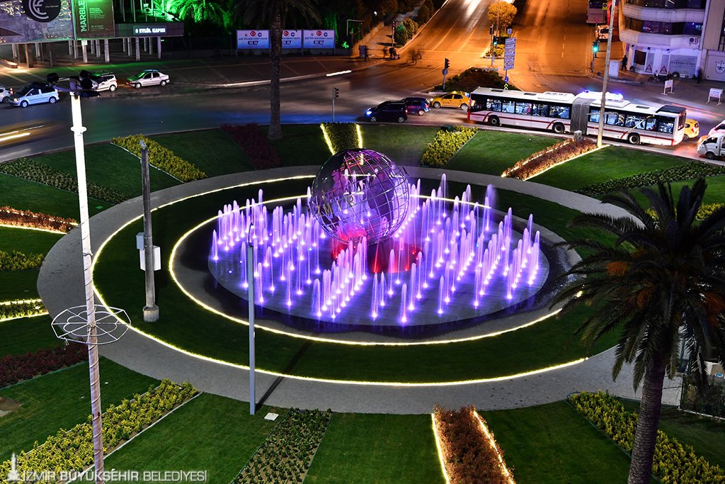 İzmir Büyükşehir Belediyesi'nin kentin simge mekanlarından 9 Eylül Meydanı'nda yaptığı yeşil alan düzenlemesi, özellikle geceleri büyük ilgi topluyor. İzmir Marşı'nın farklı sanatçılar tarafından seslendirilen üç ayrı versiyonu eşliğinde hazırlanan ışık ve su gösterisi, izleyenlere duygulu ve bir o kadar da keyifli anlar yaşatıyor.