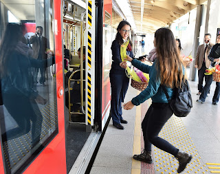 İzmir Büyükşehir Belediyesi, yeni araçlardan 5 vagonluk ilk tren setini sefere başlattı. Metro personeli, yeni trenin ilk yolcularını çiçeklerle karşıladı. İzmirliler, “yat konseptli” farklı tasarımıyla dikkat çeken metro aracına tam not verdi.