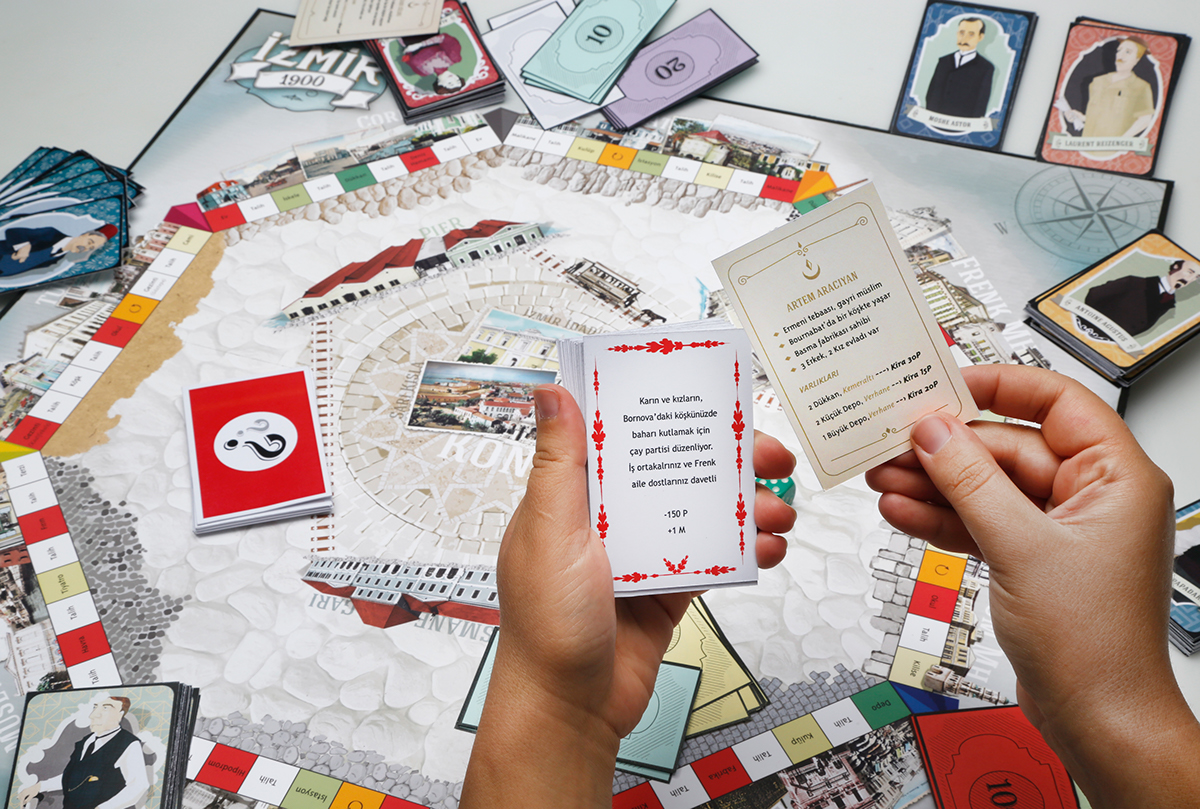 İzmirli grafik tasarımcı ve araştırma görevlisi Ayşegül Acar, Dokuz Eylül Üniversitesi Güzel Sanatlar Enstitüsü'nde yürüttüğü doktora çalışmaları sırasında oluşturduğu bir kutu oyunu tasarımı ile dikkatimizi çekti. İzmir’de yasayan ya da İzmir’i biraz da olsa deneyimleme şansı bulmuş kişilerin rahatlıkla oynayabileceği bu oyun, 4-8 kişiyle oynanıyor ve oyuncular seçtikleri karakterlere göre ‘talih kartlarından’ çıkan görevlerle, İzmir'in 1900 başlarındaki günlük hayatını deneyimleyebiliyor.