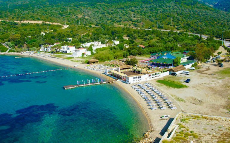 Eski Foça-Yeni Foça Yolu 6.km’de bulunan Club Mackerel Tatil Köyü, havuzu, plajı, restoranı, kafe ve otel odalarıyla tatilcileri ağırlıyor. Ücretli günlük girişlerle plaj ve havuzdan yararlanılabiliyor. Kum plaj çocuklu aileler ve gençler için uygun. Deniz suyu oldukça soğuk. İzmir şehir merkezinden yaklaşık 75 km uzaklıkta.