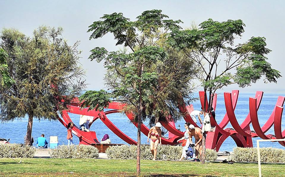 Yer, Konak Meydanı'nın deniz tarafındaki çim alan.. Başrolde ise yabancı turistler var. Gökyüzünde parıldayan güneşi, mis gibi körfez havasını ve yemyeşil çimleri gören turist çift, soyunarak mayolarıyla kaldıktan sonra çevredekilerin şaşkın bakışları arasında güneşlenmeye başladı. Kentin göbeğinde plaj havası estiren bu görüntü Türkiye'de pek alışılmış bir durum olmasa da, kitap okuyup güneşlenen çifti İzmir'de kimse rahatsız etmedi.