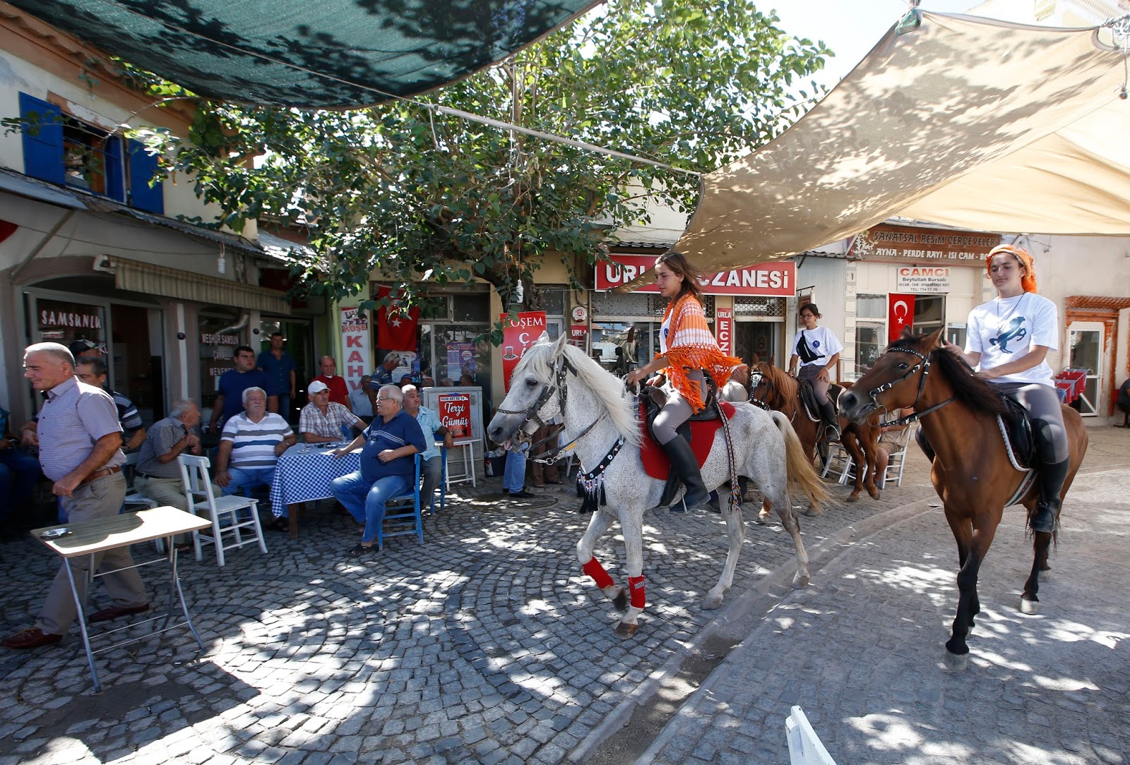 Görenlerin merakla izlediği kızların alışverişlerini de at sırtında yapması ilginç görüntüler oluşuyor. İlçe sakinlerinin ‘Urla'nın atçı kızları’ ismini verdiği gençler, şimdiden ilçenin sembolü oldu.