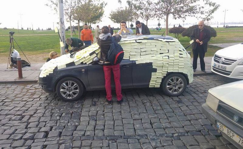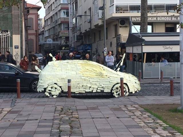 İzmir Kordon'da bir aracın engelli geçişini kapatacak şekilde park etmiş olması çevredeki duyarlı vatandaşların tepkisine neden oldu. Duyarlı vatandaşlar aracın sahibine ders vermek amacıyla aracı boydan boya yapışkanlı kağıt ile kapladı. Bu görüntüler sosyal medyada da büyük yankı uyandırdı.