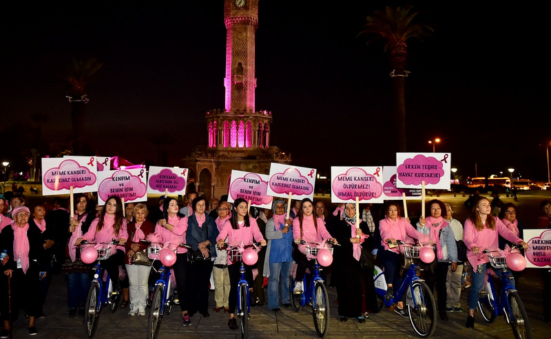 İzmir Büyükşehir Belediyesi meclis üyesi ve bürokratları ile SAĞ-KAL, Kanserle Mücadeleyi Destekleme Derneği, MEMEKANDER Meme Kanseri İle Savaşım Derneği, Güzelyalı Sağlıklı Yaş Alma Alzheimer Merkezi, Tülay Aktaş Gönüllüleri Güçbirliği, Türkiye Yardımseverler Derneği, Türk Kadınlar Konseyi Derneği, Konak Kent Konseyi, Türk Kadınlar Birliği Derneği ve Kanserle Dans Derneği üyelerinin bir araya geldiği buluşmada, kanserle mücadele çağrısı yapıldı. Gündoğdu Meydanı’nda toplanan grubun Alsancak İskelesi’ne yaptığı yürüyüşe, bisikletlerini pembe balonlarla süsleyen kadınlar da katıldı. Pembe renkle süslenmiş vapur ile Konak İskelesi’ne gelen grubun sözcüsü İzmir Büyükşehir Belediyesi Meclis Üyesi Hatice Tatlı, pembe ışıkla aydınlatılan Tarihi Saat Kulesi’nin önünde bir farkındalık konuşması yaptı. Tatlı, meme kanserinde erken teşhisin ve periyodik muayenelerin önemine değinerek bilinçsizlik nedeniyle çoğu tanıda geç kalındığını vurguladı. Etkinlikte, pembe fular takarak destek veren erkekler de yer aldı.